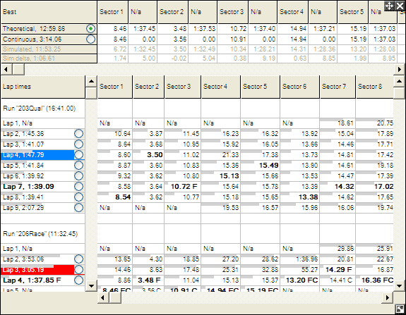 step 1: Load up both of the sets of logged data that you wish to compare. Two sets of data will now be displayed on the "Lap and Sectors Times" table. Select the data that you wish to compare.