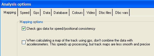 This will open up a window. Tick the box marked "Check GPS data for speed /positional consistency" and un-tick the box which prevents the data from the accelerometers form being used. Now press "OK"