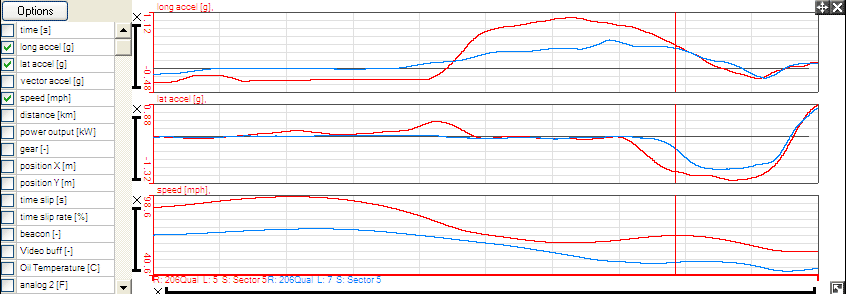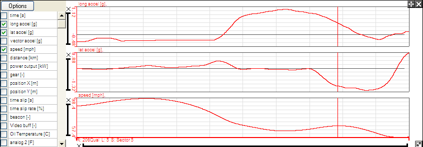 step 5: This will now be displayed on your Quick Graph. The best logged lap or sector is displayed as a straight line running horizontally across the graph. Where the data for the lap or sector that is being examined falls above this line, time was lost, where it falls below, it was gained.