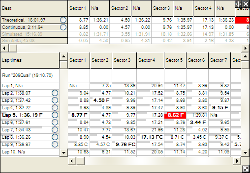 step 4: Select which lap or sector you wish to display on the "Lap and Sector Times" table.