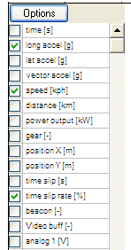 step 3: Select "time slip rate[%]" as one of your variables. Time slip shows the rate at which time is lost or gained from lap to lap. For example, if on your best lap you were travelling at a constant speed of one hundred mph, and on a subsequent lap you only travelled at ninety mph, then your time slip for that lap would be 10%.