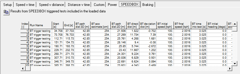 Results from SPEEDBOX triggered tests included in the loaded data are shown here.