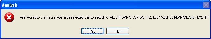This dialog scans your computer for connected Compact Flash cards. If the software cannot find a card, it will let you know. Select the Compact Flash card you wish to format from the drop down menu. Then click Format Drive. The software will then ask you for confirmation: