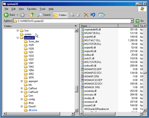 Step #3. Drag and drop the DLL into the directory as required, note that you must place a copy of the file into the directory – not just a shortcut to the file. In this example we have just dragged and dropped “mscat32.dll” from the desktop to the “C:\WINDOWS/system32” directory