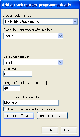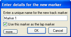 When you let go of the mouse button, you will be prompted with a dialog, asking you to name your track marker, and whether you want to use it as the lap marker. The first track marker you add doesn't have to be the Lap Marker, this can always be changed later.