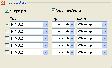 • Set by laps/sectors - When checked (default) it allows you to choose which portion of the plot is displayed, ranging from one sector to the entire run. To display singular sectors, you must first set up the Lap Marker and the sector markers, otherwise only the full run is available.