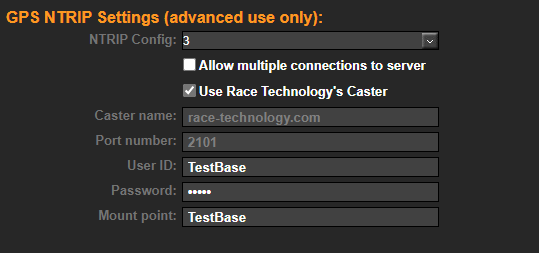 - Sign up to an NTRIP service that can supply RTCM v3.x corrections valid for your location or have a Race Technology Base station set up to provide corrections