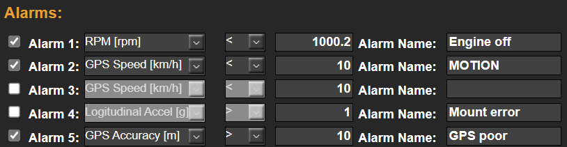 This section allows you to configure the alarms (currently up to 5 alarms can be configured)