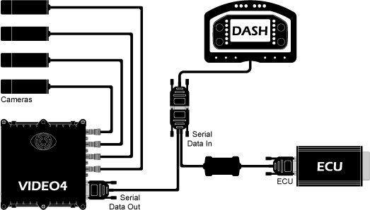 Please note that in this configuration it is important that both the DASH display and the VIDEO4 are configured to work together correctly. There is more information about this on these pages: