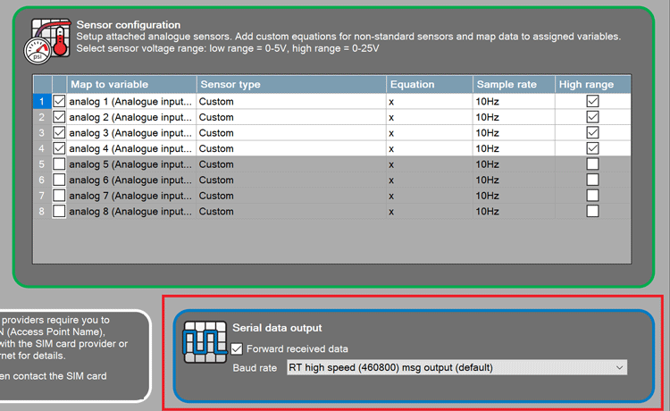 RT LIVE v2 has a user configuration option to control forwarding incoming serial data back to same serial port. When this tick box is ticked, incoming serial data will be forwarded back to same serial port. When the RT LIVE v2 is used with an ECU interface and dash this box should be ticked. The ECU data will then be available to display on the dash.