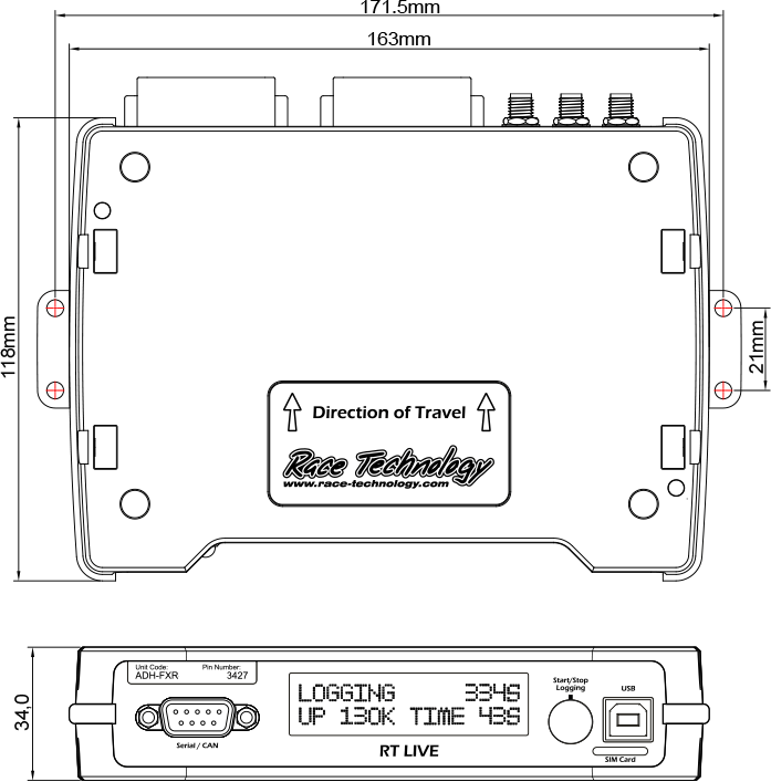 The RT LIVE v2 unit should be located in the car so that it is: