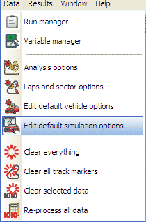 - They are not stored with the car options, although it is possible to base the simulation on parameters set in the car options