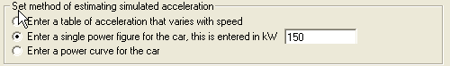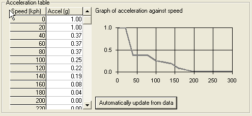 Note that whatever information is entered in the acceleration options, the absolute maximum rate that the vehicle can acceleration is also limited by the data that is entered in the Braking options.