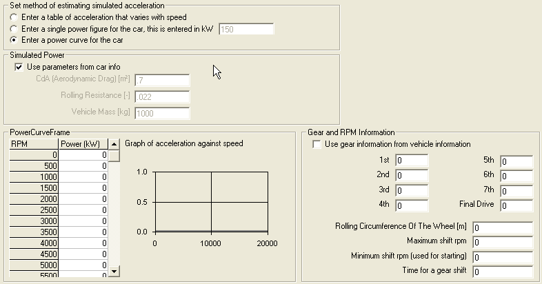 - the power output of the car to be entered as a function of RPM, typically this data is either available from manufacturers data or from a rolling road test
