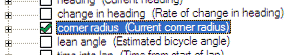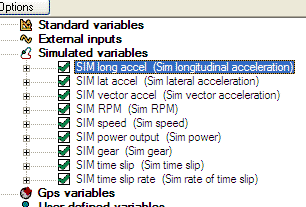 In this case we’ve selected that the simulated longitudinal and lateral accelerations are available, as well as simulated speed and time slip rate. Note that the simulation mode uses the calculated corner radius in the software: