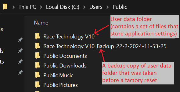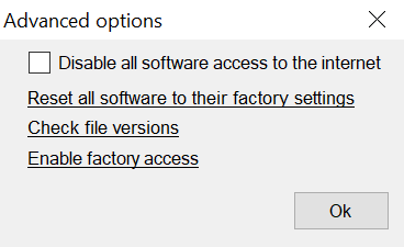 This option allows you to temporarily enable factory features of applications by using a factory code provided by Race Technology.
