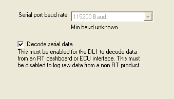 7. On the serial port configuration tab you must set the serial port baud rate to 115200, and tick the box that says “Decode serial data”