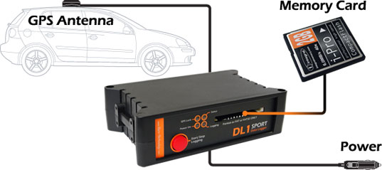 A basic data logging system only need be the GPS enabled data logger, with integrated accelerometers. Installing this simple box in your vehicle, with a GPS antenna mounted on the roof, and a power connection, gives a wealth of information ready for analysis. Information such as trackmaps, lap and sector times, braking points, grip usage, power usage and so much more.