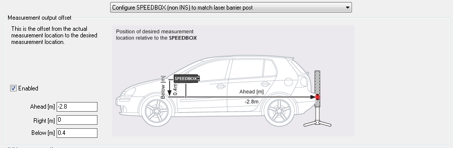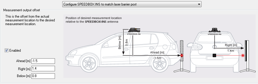- A measurement offset can be applied to the output from both the SPEEDBOX and the SPEEDBOX-INS. This is used to move the output from the point of installation to the point of interest. For details click here.