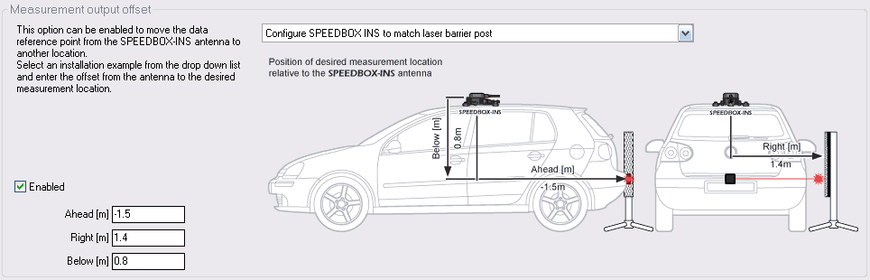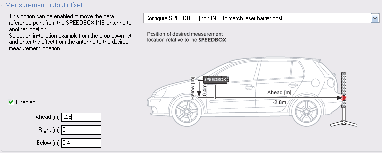 - A measurement offset can be applied to the output from both the SPEEDBOX and the SPEEDBOX-INS. This is used to move the output from the point of installation to the point of interest. For details click here.