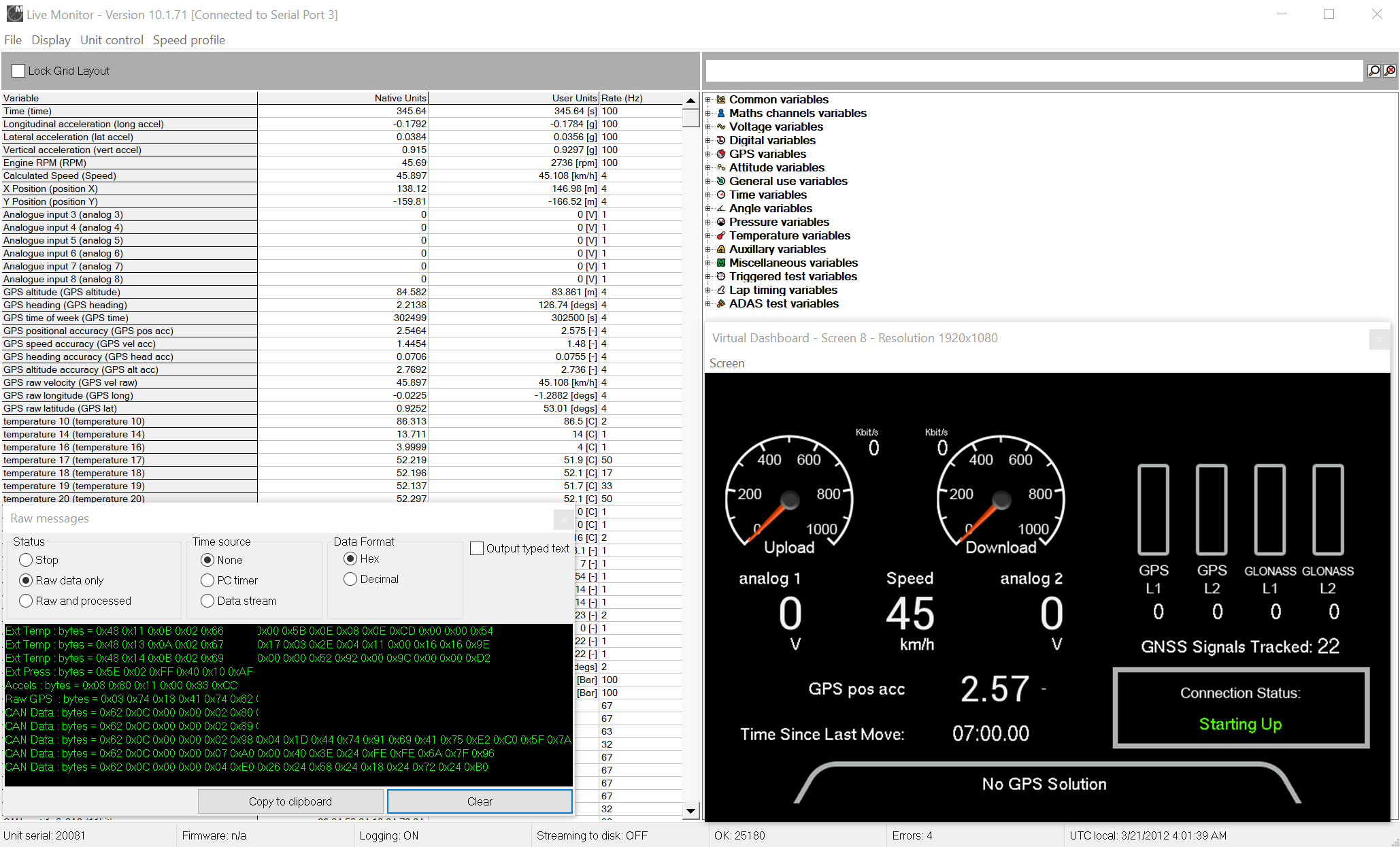 - The Live Monitor can be used to output data to Race Technology equipment. This is useful to diagnose problems and check the configuration of a display after setting it up.