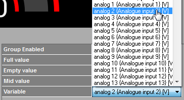 - Selecting a variable from the variable drop down list (in the group properties section).