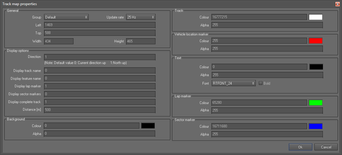 Add a track map control and change its properties as follows: