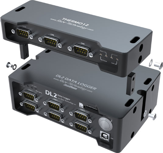 The THERMO12 can be screwed directly to other compatible Race Technology products using the supplied stacking links, or alternatively can be attached to any flat surface with velcro or cable ties: