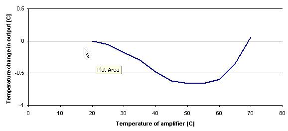 The electronics in the amplifier also compensate for so called “cold junction” effects, this is an important function of the amplifier electronics. Simply, this measures the temperate of the amplifier electronics and corrects the output signal accordingly. Note that if the user wants to reproduce these results you must heat and cool the whole amplifier assembly at the same time, any temperature differentials in the unit will cause errors.