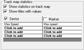 Click on the “options” button at the top left of the track map window. You will see the options screen and there will be a section called "Track map statistics" as below.