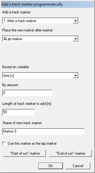To place a marker in this way, open the track map and click on the button, which will open the following dialog box: