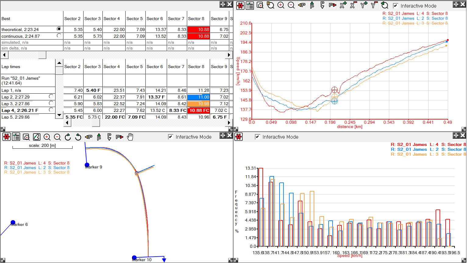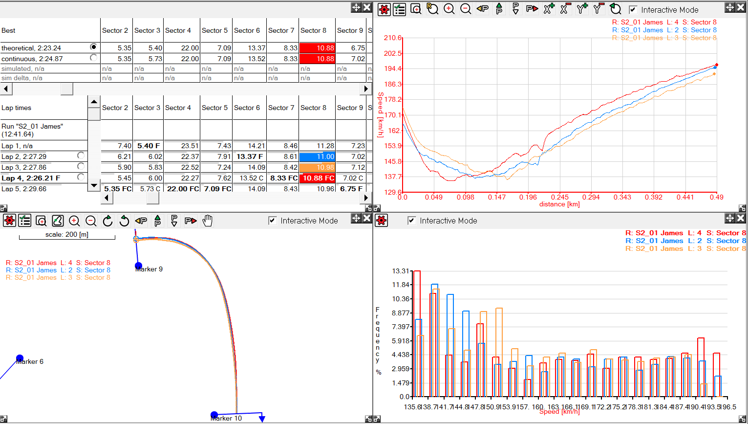 Interactive mode is an option on all graphs and the track maps. Interactive mode is always enabled on the Quick XY Graph, Performance Calculation Table, Summary Statistics tables (when in "Display for selected area" mode).