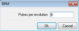 This screen is used to configure the engine RPM. This is a very important configuration parameter and it allows the software to convert the number of input pulses to a useful reading of RPM. Without a correct setting for pulses per revolution the RPM data will be incorrect. Actual RPM is calculated by dividing the number of input pulses by the pulses per revolution value that you enter into this dialog.