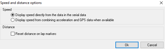Click on the Configuration -> Speed and distance options menu item to open this dialog.