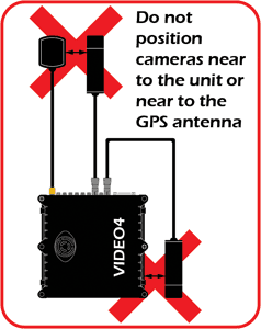 To ensure your VIDEO with GPS works reliably it is important to ensure the crucial components of the system (the video cameras and GPS antenna) are not subject to electrical interference from each other. We recommend that the GPS cable and antenna are routed through the opposite side of the vehicle to the bullet cameras and cables,and the cameras are kept at least 60cm (2ft) away from the GPS antenna.