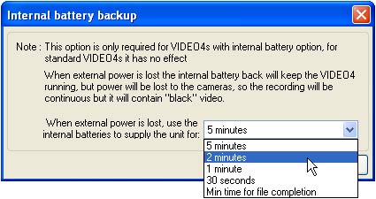 - in the even that power is unexpectedly lost at the end of recording, typically when the main power kill switch is used, then the VIDEO4 can power itself to ensure that all recordings are completed.