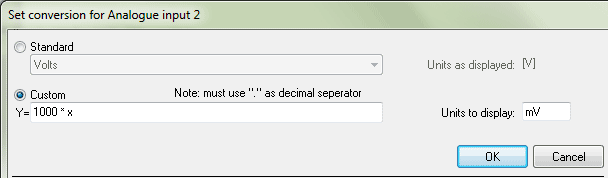 e.g. If you wish to convert a voltage value to mill volts, you can write the following equation.