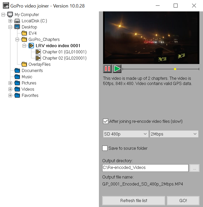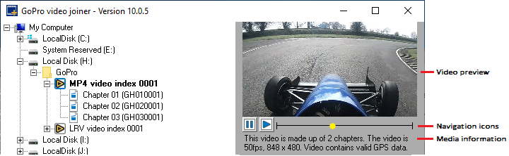 GoPro cameras save longer recordings to Micro-SD cards by splitting them into equal-sized files, each up to 4GB in size. Since the separate video files have GPS data embedded in them, normal video joining would result in a video that has no GPS data. The GoPro Video Joiner application can be used to join GoPro videos without losing the GPS data recorded.