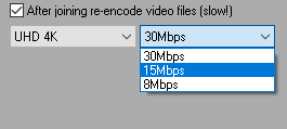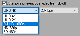 3. Should you require the joined video to have a different resolution or bitrate, check “After joining re-encode video files” and select the desired encoding.