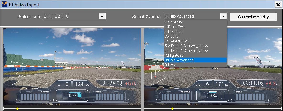 Customised overlays appear on the "Select overlay" drop down list in the Analysis Video export dialog as follows: