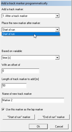 Click "OK" and an end of run marker will now be added to the track map.