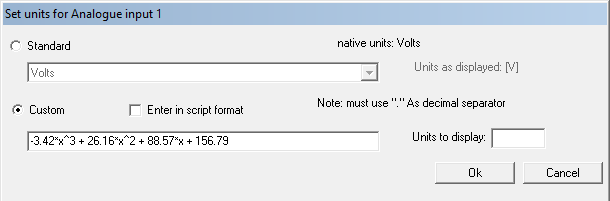 Step 4: Make sure that you have made a note of the formula that has been created for the sensor in the DASH2 configuration software (See the section on connecting your own sensor to the DASH2 for information on how to do this).