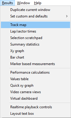 Step 1: Having loaded a run, go to the results menu at the top of the screen. Then select the track map option.