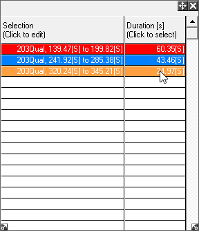 A number of different selections may be stored to the Scratchpad. To select one or more of them to analyze, click on the relevant Duration box.
