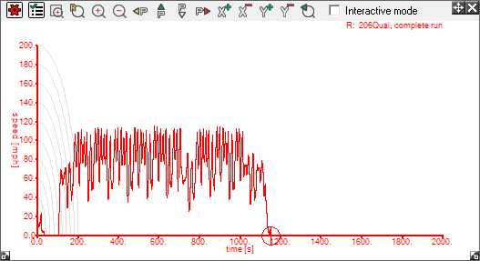 button. When you open a new graph, it will initially display the speed against time for the whole of the first run you loaded, with any laps or sectors you have highlighted in the Laps And Sector Times table highlighted on the trace. If no .RUN files are loaded, then no data will be displayed.