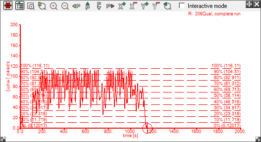 You can display up to 5 variables on each axis. You can have either 1 X- and 1 Y-axis, up to 5 X-axes against 1 Y-axis, 1 X-axis against up to 5 Y-axes or up to 5 XY Graphs displayed in the same space. When you select multiple Y-axes against one X-axis, the Y-axes will be colour coded to the traces drawn. The same goes for if you chose multiple X-axes against one Y-axis. The following graph shows two Y-axis against one X-axis: