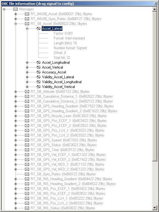 To set up a CAN channel with a signal drag the signal name from this window to the message in the main CAN configuration window