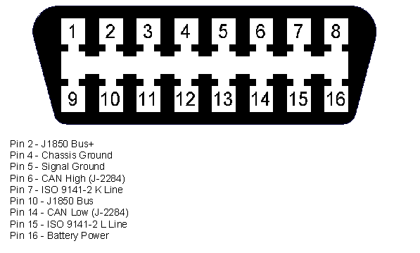 ConnectingTheCANOBDIIInterface / VehicleOBDConnectorPinAssignmentsForCANOBDII