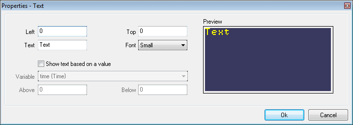 The Simple Text Properties window will open when you choose to edit the properties of a Simple Text control.