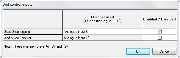 Tick the box to enable the input you wish to use, and select which Analogue input channel to use. You can use a channel which is being mapped to another channel for logging or being transmitted on the serial port.